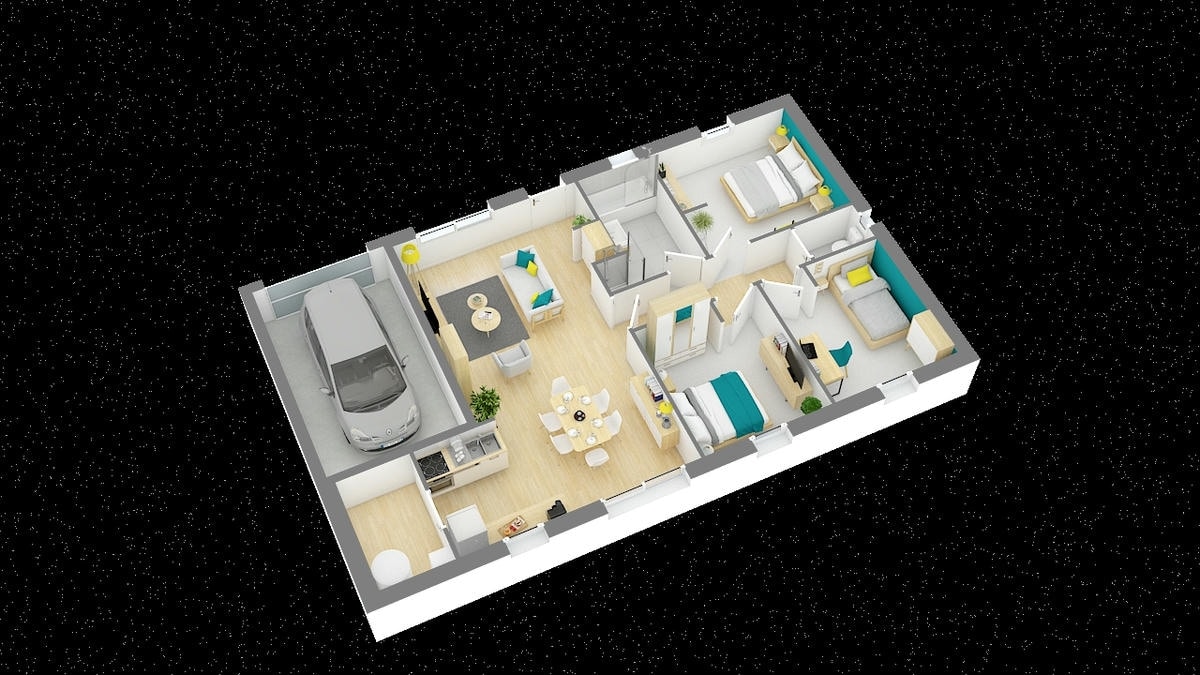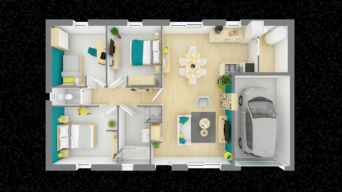 Disposant de 3 chambres et d’un vaste séjour, elle offre, en plus de ses 80m2, un garage intégré.