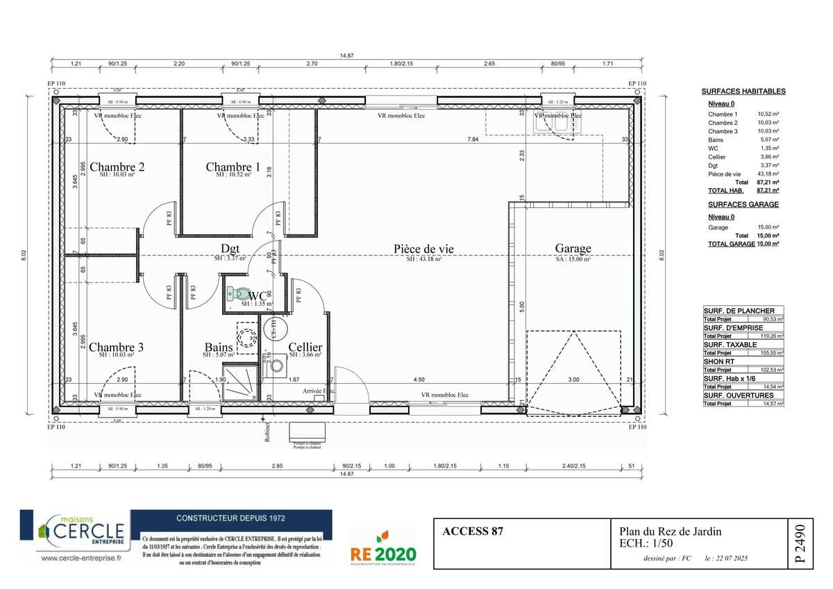 La Access 87 est un modèle familial parfaitement équilibré, offrant 87 m² habitables et un garage intégré de 15 m². Pensée pour conjuguer confort et budget maîtrisé, elle constitue une solution idéale pour une famille en quête d’espace et de fonctionnalité.