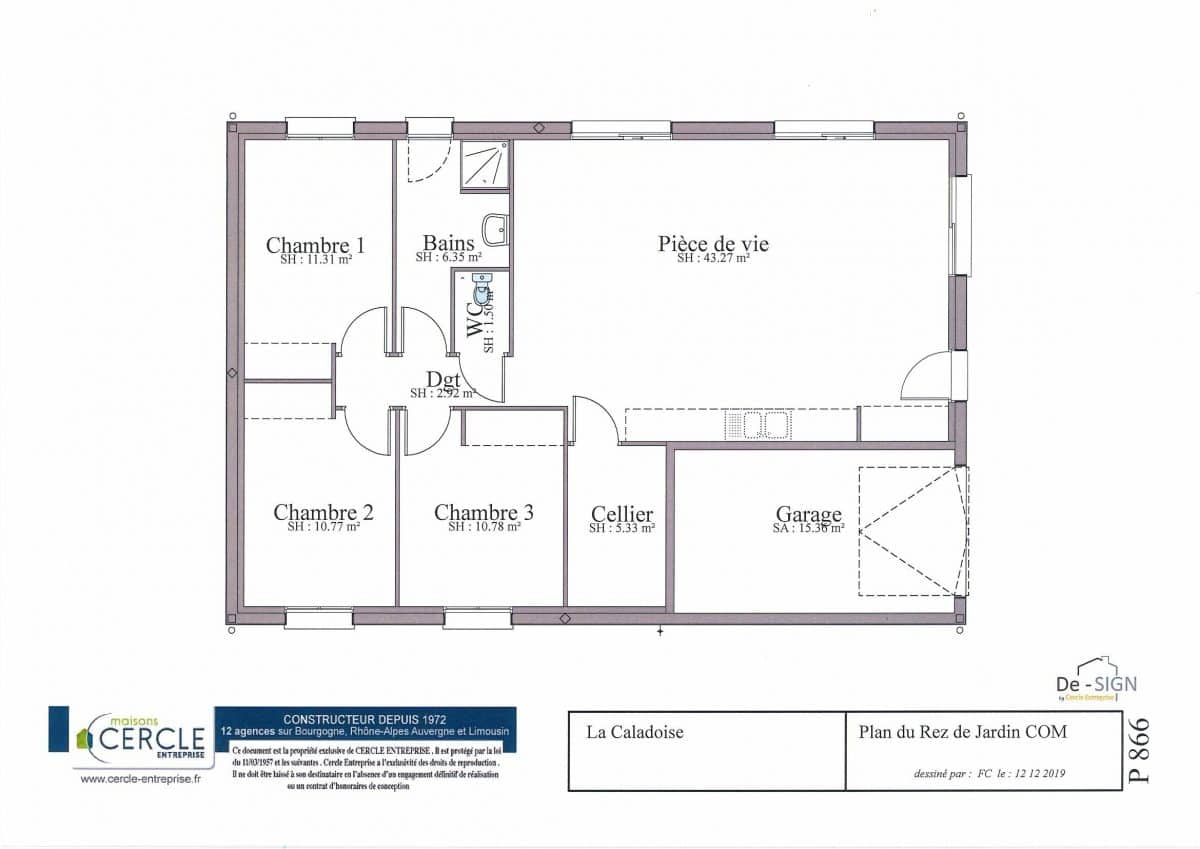 La Caladoise est une maison de plain pied avec un large pignon afin de pouvoir recevoir l’entrée et la porte du garage. Cette maison peut donc s’implanter sur des terrains assez étroits sans être obligé de se mettre en limite de propriété. L’espace cuisine est complètement ouvert sur le séjour formant une partie vie agréable et très lumineuse.Elle est composée de 3 ou 4 chambres, une salle de bains, un WC, un cellier pour vous offrir l’essentiel sans compromis. Une maison accessible et très chaleureuse.