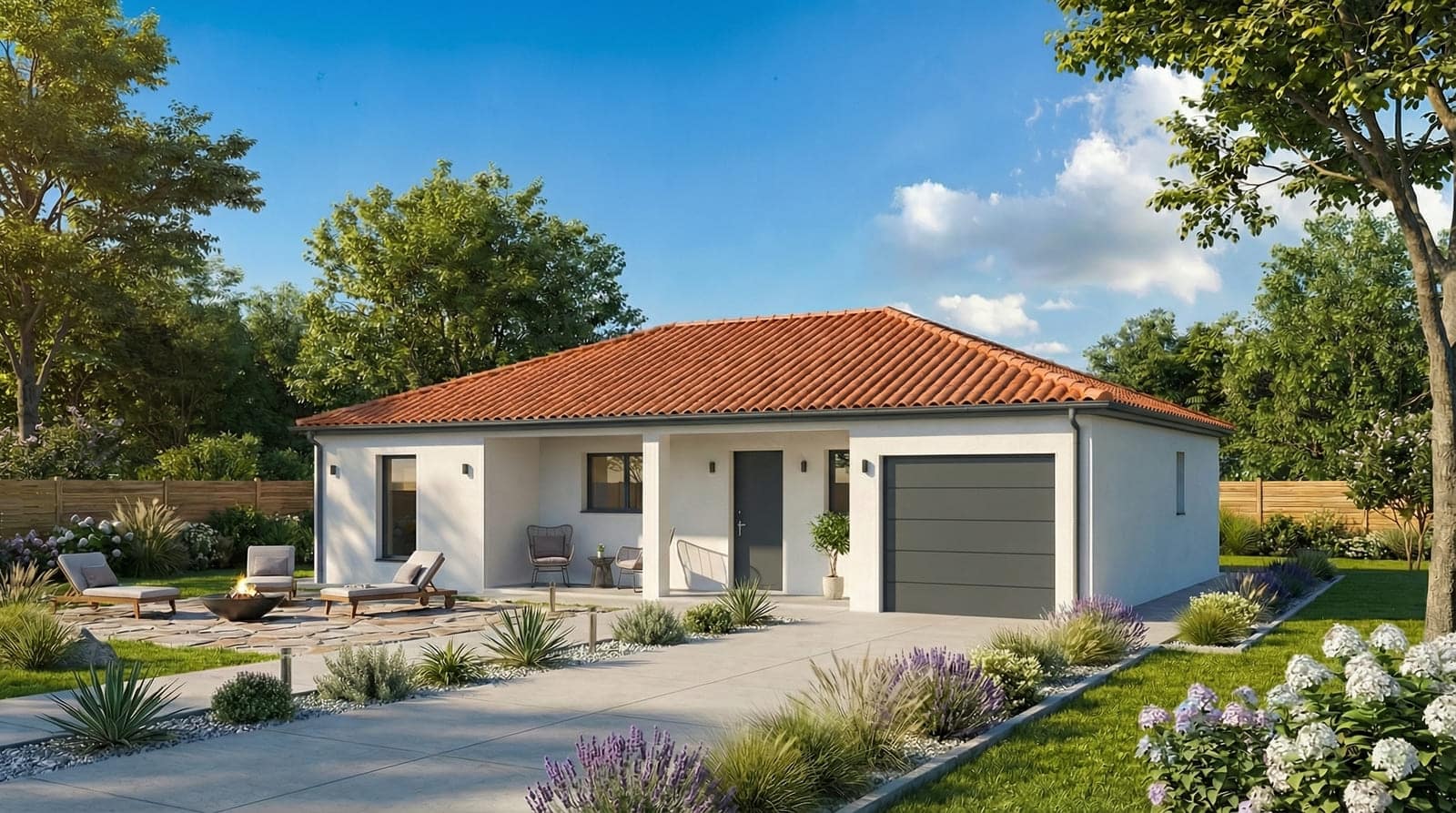 Le modèle Idéal est un modèle qui intègre une organisation bien pensée pour les familles désirant séparer la suite parentale du coin nuit pour les enfants. Avec 98 m2 ce modèle a tout pour plaire, un bel espace vie central avec une entrée ouverte.
